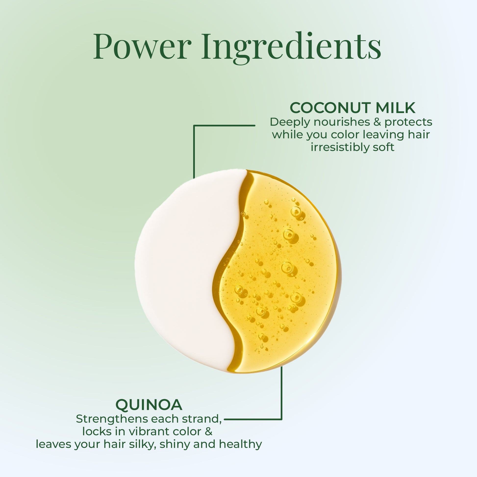Step into the future of hair coloring with NATRIQUE Naturals A luxurious, pH-balanced gel that delivers salon-rich, long-lasting color while it repairs. Our proprietary AminoZX™ Miracle Molecule—a next-gen amino-peptide complex along with 6 herbal extracts—penetrates deep to help restore broken bonds and strengthen the hair’s inner structure as you color. The Coconut Milk Activator and Aqua Quinoa Colorant create a smooth, drip-free gel for even coverage and vibrant payoff in just 25 minutes.